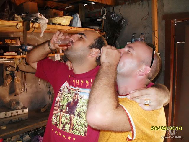 Гарные кубанские хлопцы пьють и не закусывают.))